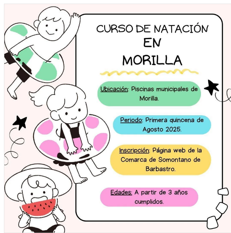 El Ayuntamiento de Ilche informa de la realización de un curso de natación en la localidad de Morilla.