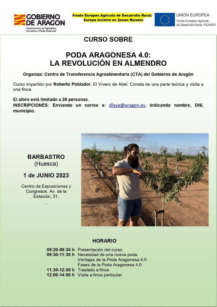 El Gobierno de Aragón, a través del Departamento de Agricultura, Ganadería y Medio Ambiente, ha organizado un curso sobre "Poda Aragonesa 4.0: la revolución en almendro".