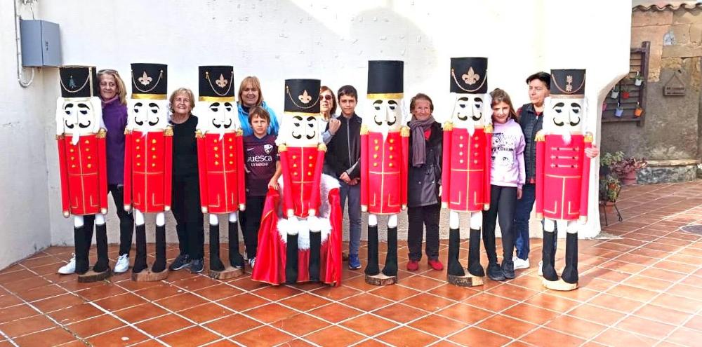En Monesma, el grupo ha trabajado en la realización de gigantes muñecos de Cascanueces, mientras que en Fornillos, un gran árbol de Navidad tejido a ganchillo forma parte de la escena navideña del portal de Belén.